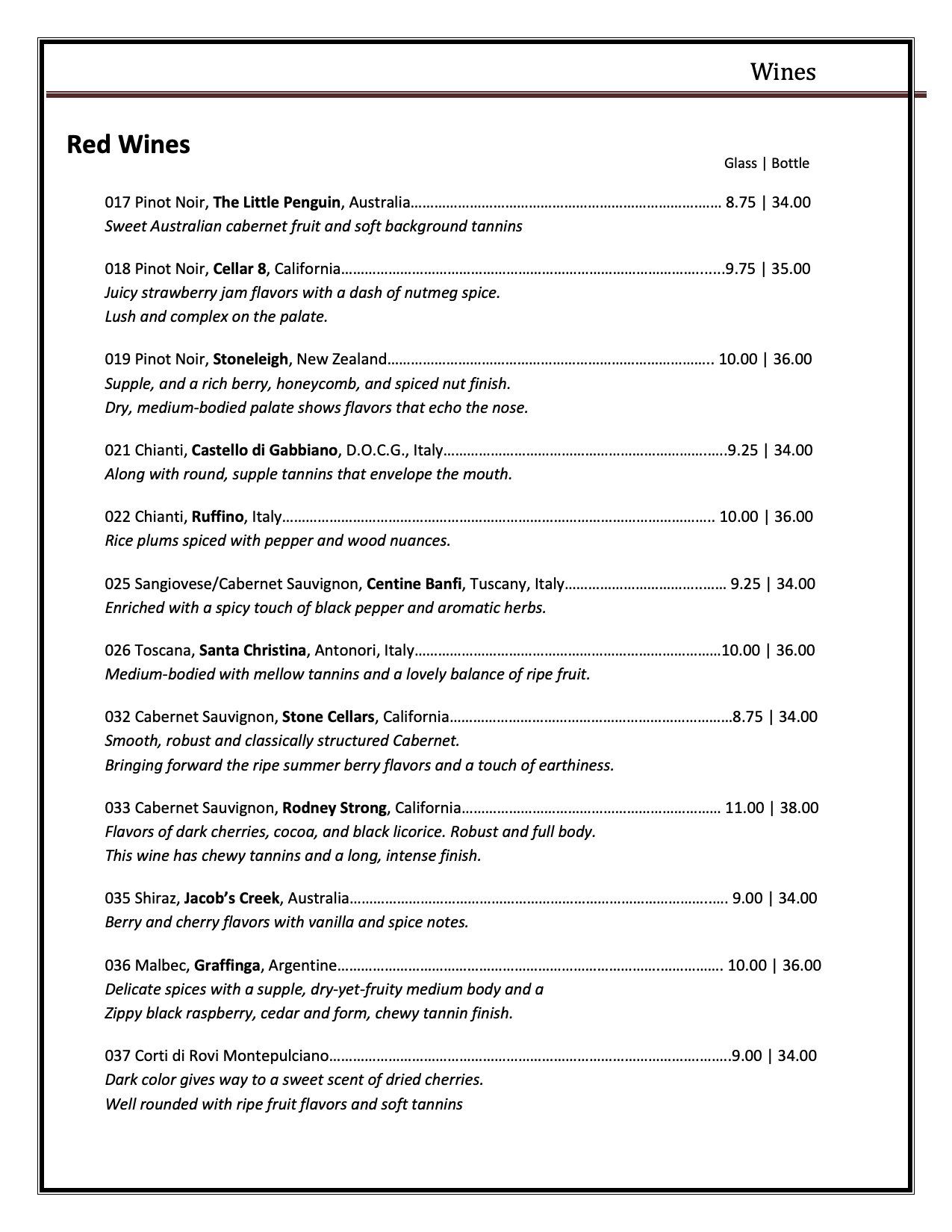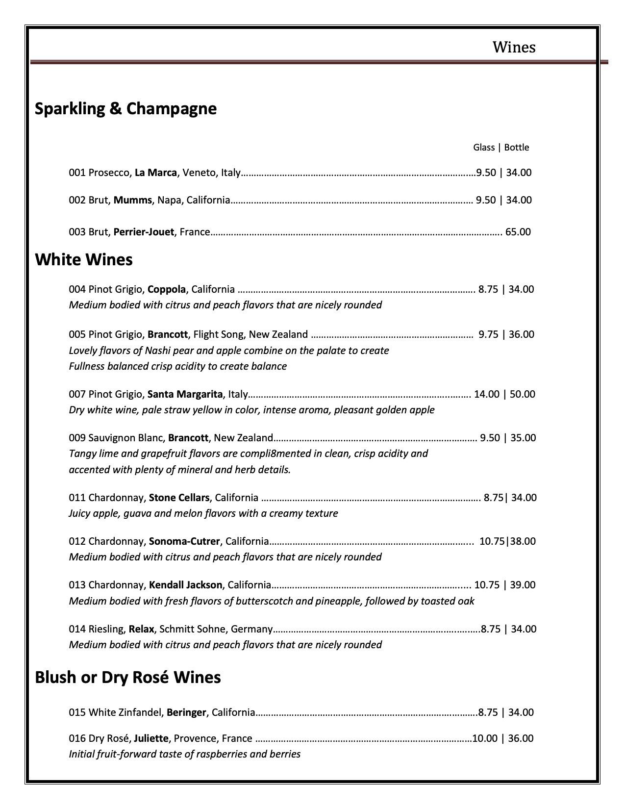 Wine List